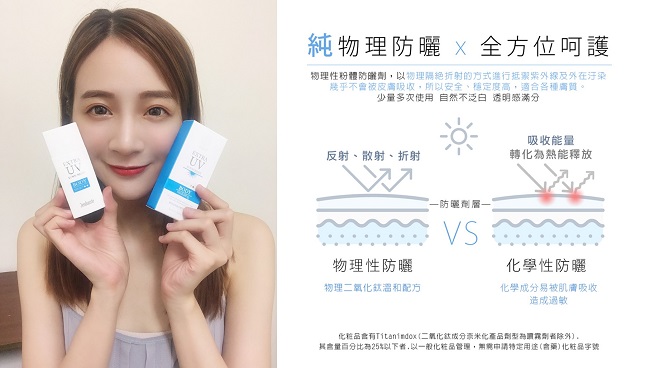建議使用物理性防曬乳,像是珍朵絲特豔陽超隔離保濕防曬乳SPF50+,