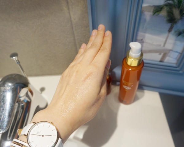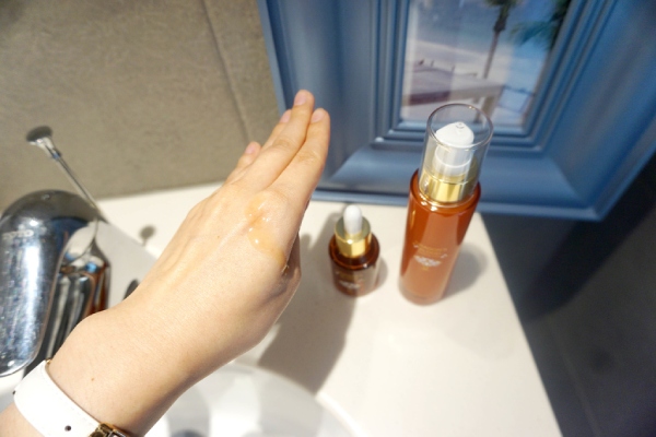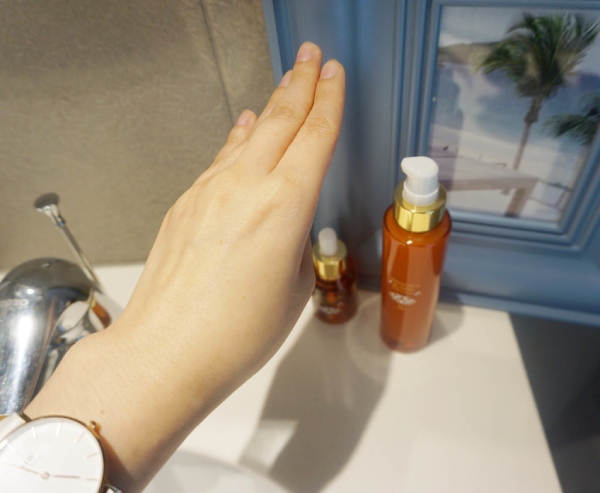 抹開就像在抹頂級精油一樣,瞬間就被肌膚給吸收,不油膩、不黏膩,清爽無負擔!又保有滋潤的效果