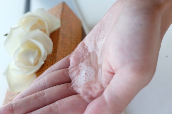 放上肌膚之後,隨著人體溫度催化下,慕絲泡泡很快就融入毛孔