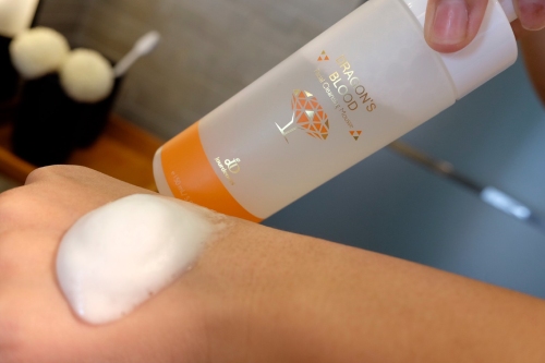 這次使用中的有一項新品佐登妮絲「龍血求麗潔顏慕絲」