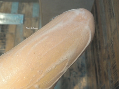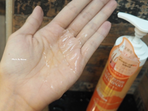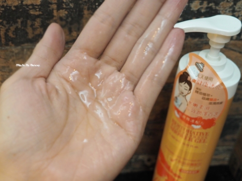 質地同樣清透,且流動性高,稍加水就能搓揉起泡