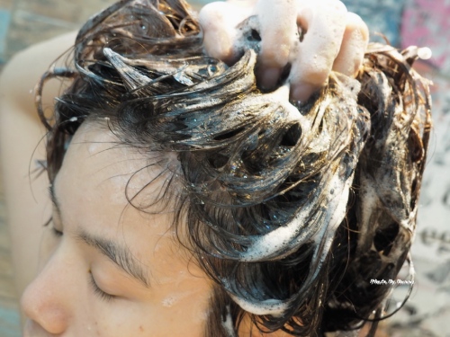 最後再以清水將洗髮精沖洗乾淨,沖洗時泡細緻好沖洗且無殘留感