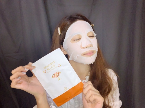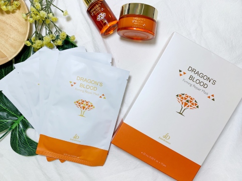 我會在使用「龍血求麗精華」後,再敷上「龍血求麗緊顏修護面膜」10分鐘。