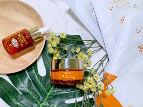 「龍血求麗精華」+「龍血求麗修護霜」以及強化保養效果的特殊保養「龍血求麗緊顏修護面膜」。