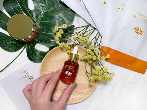 清潔臉部過後,趁臉部還帶有微微水氣時,我就會直接使用佐登妮絲的龍血求麗精華。