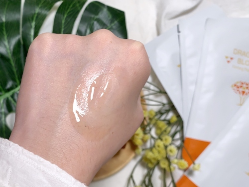 因為龍血求麗精華質地偏向水感,推開始時非常好推,肌膚可以感受到清爽中帶點滑潤感,吸收速度很快。
