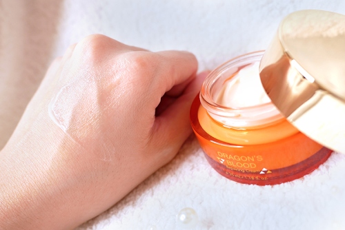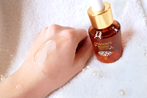 稠狀保濕的質地,品名上的「龍血」成分是「祕魯龍血樹脂」,此成分具有優越的抗老化功效