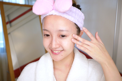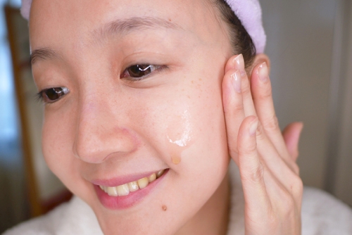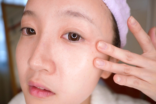 我使用保養品的先後順序都是先將它塗抹在臉最乾的部位,然後慢慢彈點到肌膚較易出油的部位~