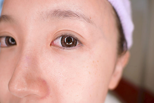 這是尚未塗抹的另一隻眼,仔細看其實還是能看見的吧!眼尾那些小細紋兒~~~
