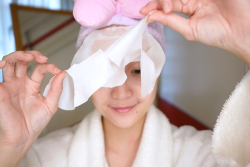 特殊的水針布面膜,只要敷10分鐘就ok 如果當天有重要場合,妝前多花10分鐘也完全不耗時!