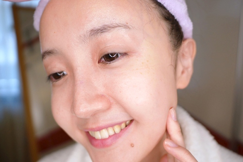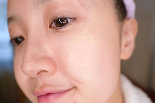 這是塗抹在臉頰上的感覺~抹開後直接就吸收了!真的超~神~奇!事前我也沒有先去角質耶