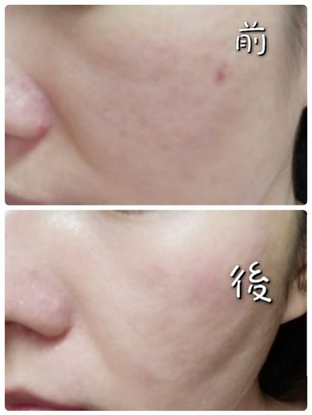 可以看到前後的比對,毛孔跟泛紅的地方都明顯改善,真的非常驚艷它的 奇蹟修護力