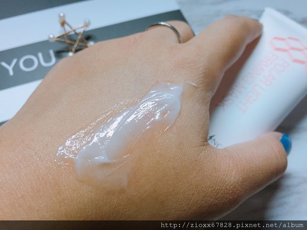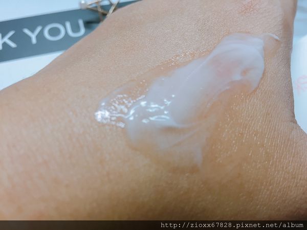 乳白色狀的質地,摸起來較常見的晚安凍膜要稠一些~