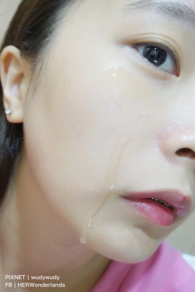 不過...少了化妝棉會遇到的狀況就像我剛剛提到的...即便仰著頭也阻止不了凝露隨地心引力而去~~~