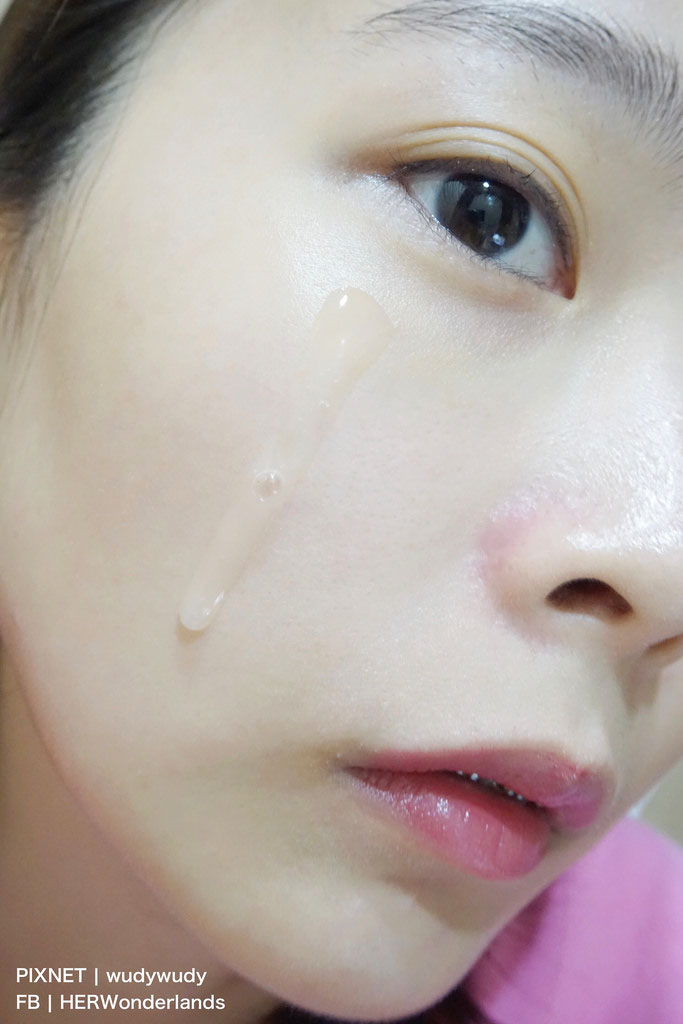 它的質地比純水再濃稠一點點,屬於流動感非常高的凝露類保養品
