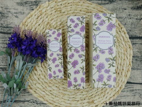 這次體驗的佐登妮絲 紫花苜蓿活妍奇蹟系列,化妝水、眼霜和保濕乳的成分是來自法國的紫花苜蓿,