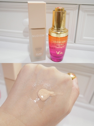 用跟精華油調和過的粉底液上妝,雖然上妝時皮膚還在打完皮秒的修護期