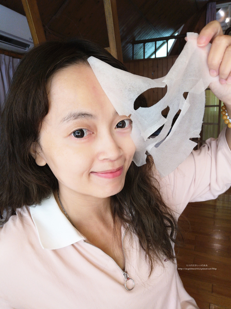 這面膜的材質真的是超超超薄~敷著臉連臉上的斑點都看的很清楚XD