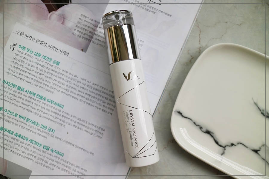 在晶淬雪雙效潤白精華之後就直接將潤白乳塗抹在臉頸