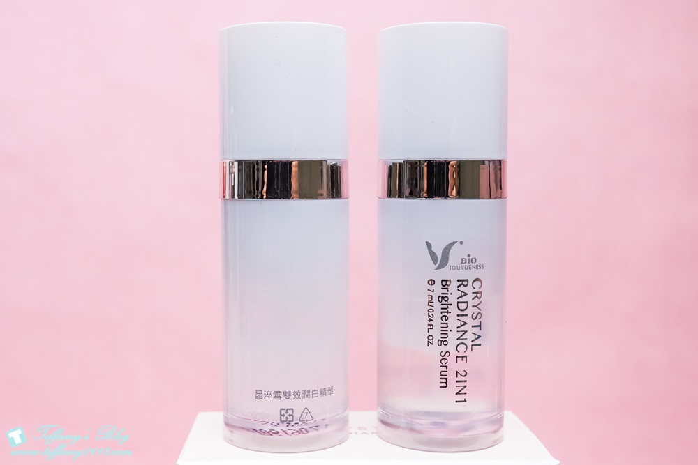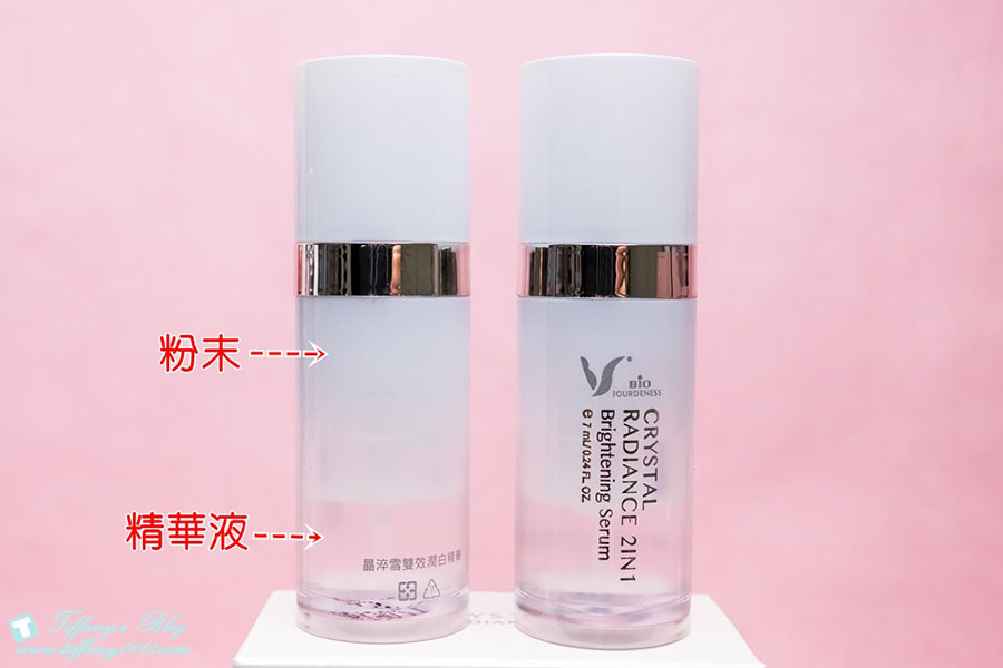 晶淬雪雙效潤白精華很特別是採取雙劑雙層的安瓶設計