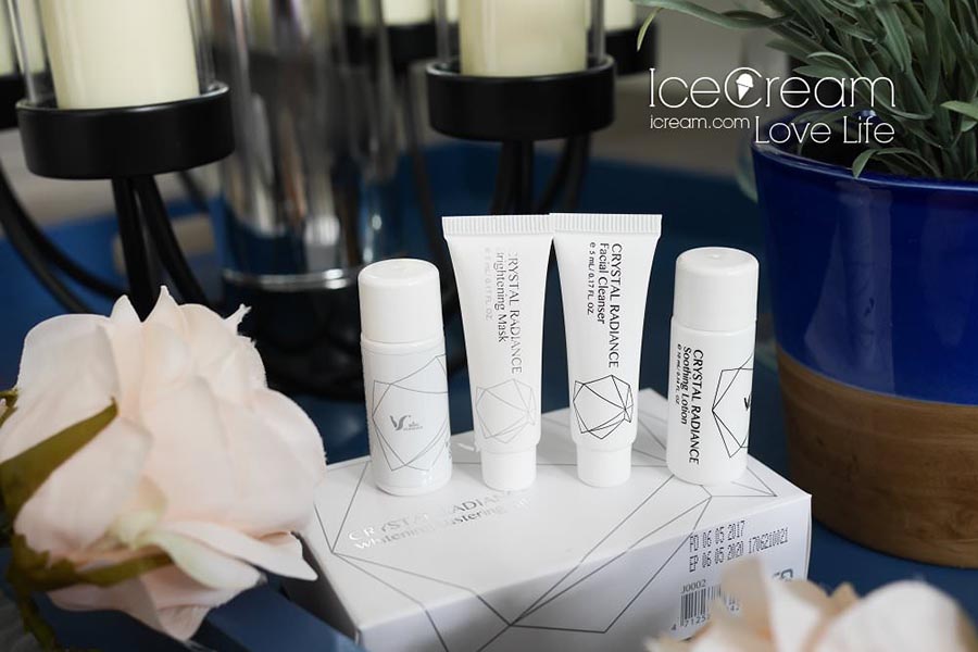 晶淬雪柔白光綻組裡面有晶淬雪潔顏乳、晶淬雪柔膚液、晶淬雪潤白乳、晶淬雪亮白面膜