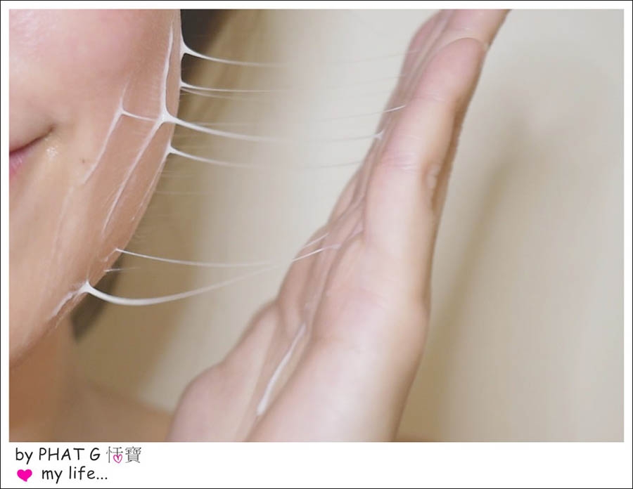擦在臉上時會呈現拉絲狀態 (拍的時候特別的明顯唷…)