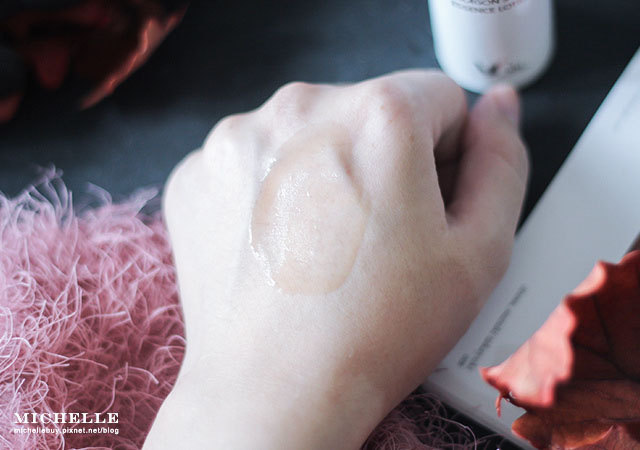 在肌膚上會有輕黏滑潤的感受,像有一層薄膜般在保護肌膚