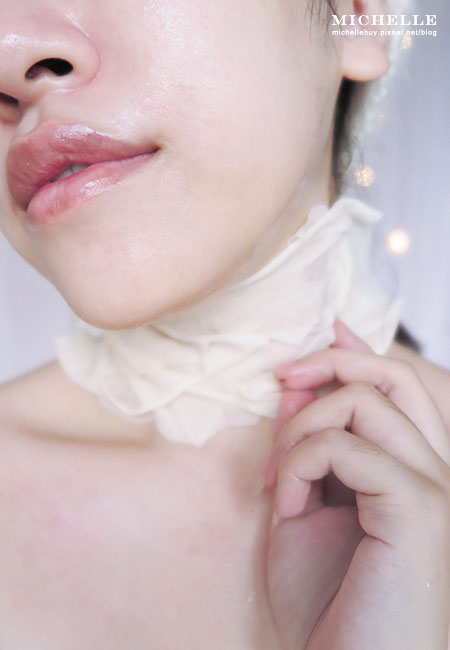還很濕潤的面膜不要浪費,可以接著敷頸部,