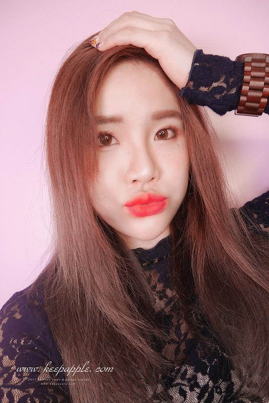 先固定唇部位置後將面膜稍稍往上以及左右撫平貼合