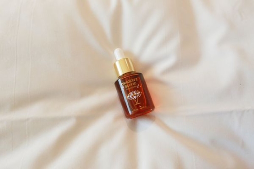 帶有草本的植物香氣,橘紅色質地的精華塗抹起來有點涼感