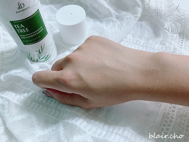 倒在手上是水感的質地,顏色粉嫩嫩的,有別於一般印象中的茶樹