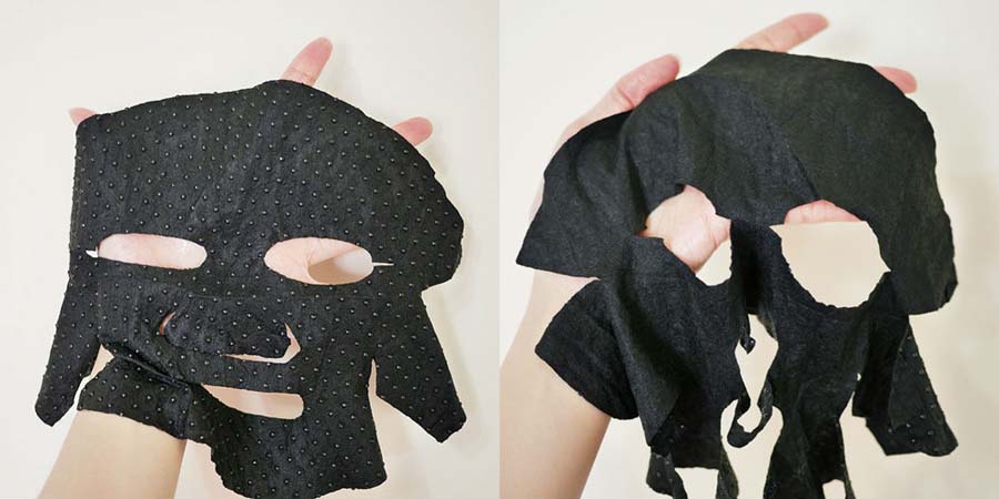 這款面膜有很多處剪裁,這樣會比較服貼,不過或許是因為它上面有上百顆磁石顆粒,