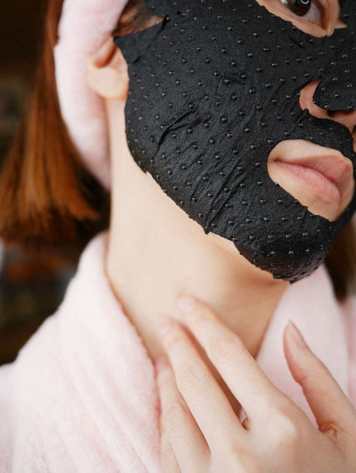 清潔肌膚後取出黑面膜,將有磁石顆粒的那面朝外避開眼唇敷在臉上。