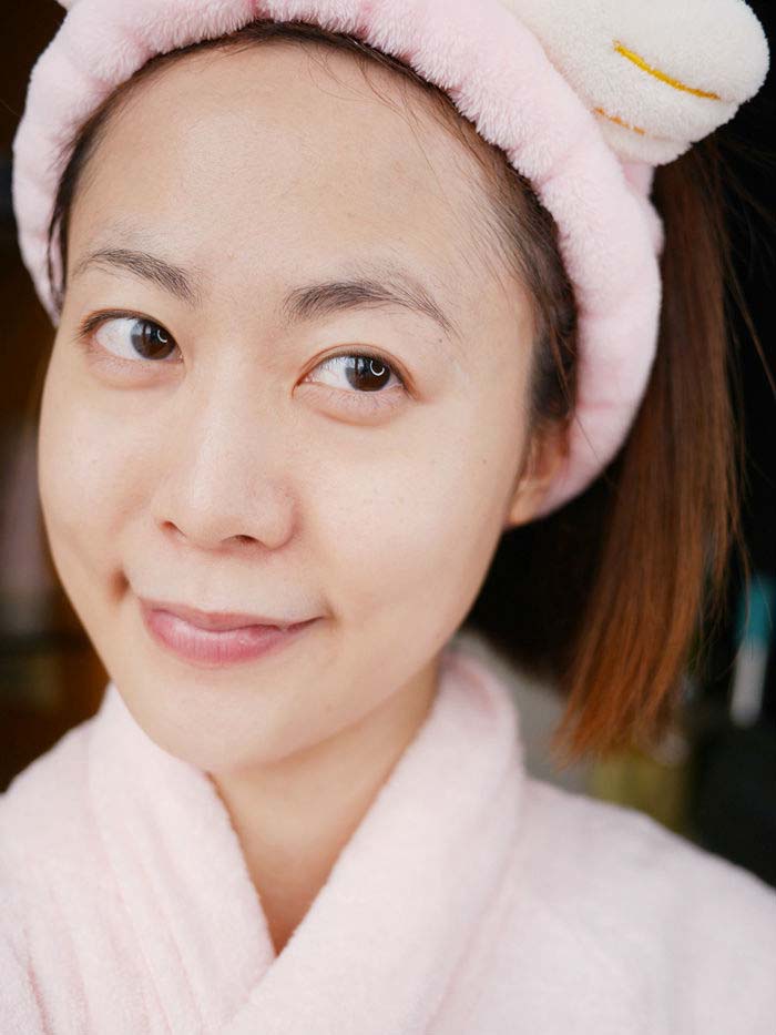 我通常都敷大概15分鐘就會取下面膜,可以輕輕地按摩肌膚讓精華液完全被吸收。