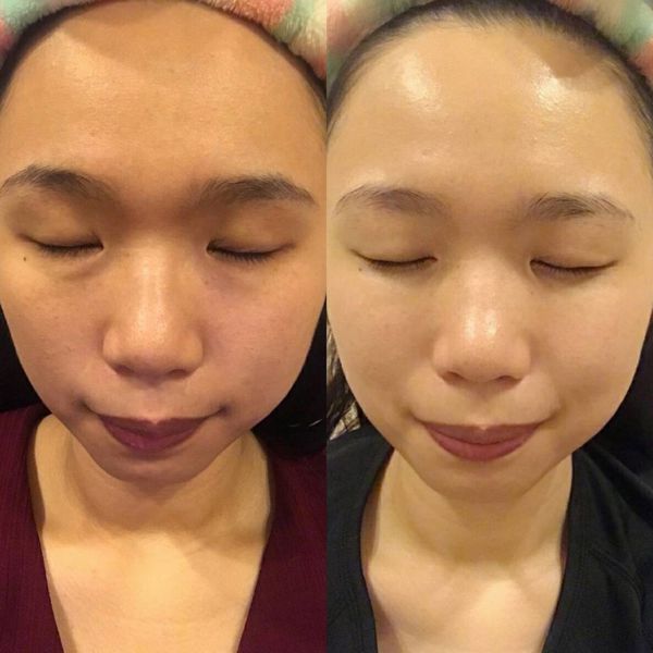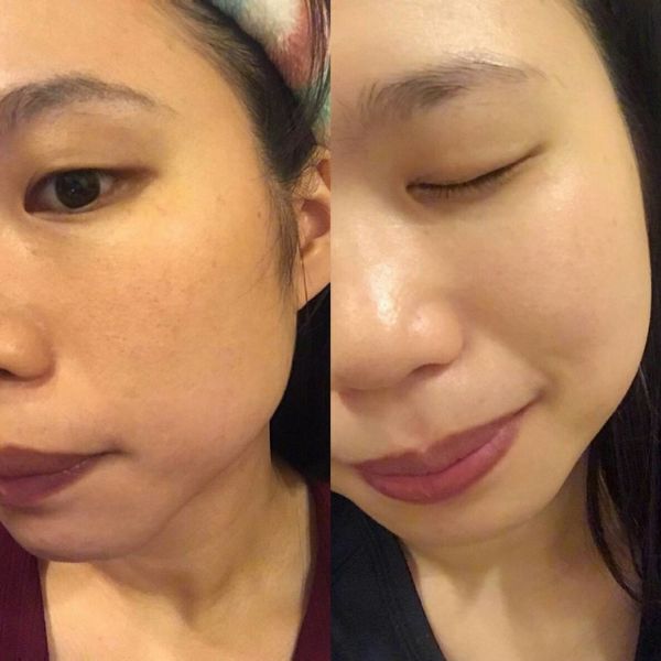 原先的肌膚乾澀,沒有光澤感,工作的疲憊全都反映在肌膚的黯沉感