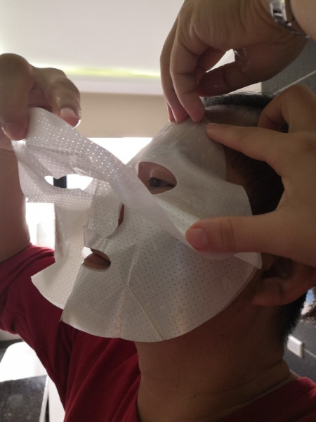 這種面膜是屬於棉質的,所以比較沒有那麼吸附我的臉龐~