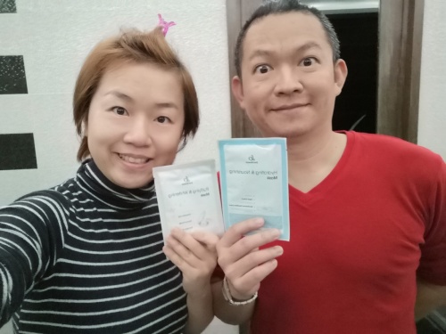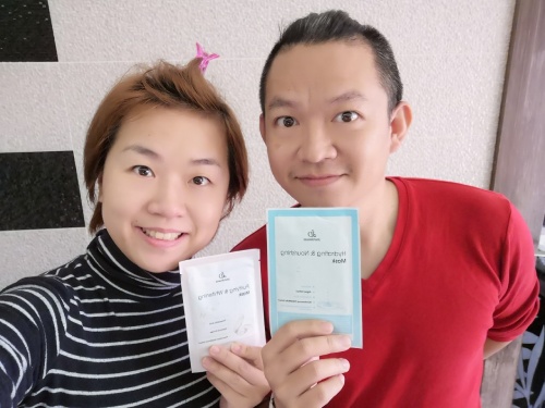 鑫點子爸比敷了水漾潤膚面膜,好水亮呢~!我則是覺得QQ的感覺~
