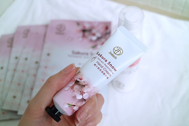 這款護手霜裡頭添加日本高山吉野櫻花葉萃取、大麥萃取、乳木果油、米糠油、燕麥萃取