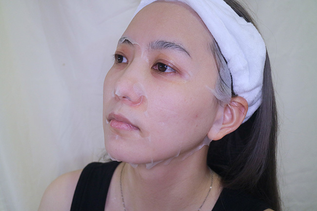我很喜歡這款面膜敷起來的感覺,材質很輕透,敷完也很服貼,而且連下巴線條的地方都可以敷得到