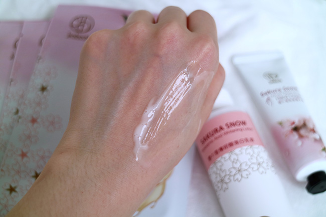 櫻花傳明酸美白乳液:水乳液質地適合夏天使用、香氣宜人舒服、擦完不黏膩