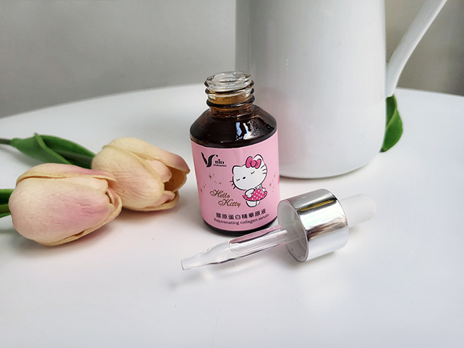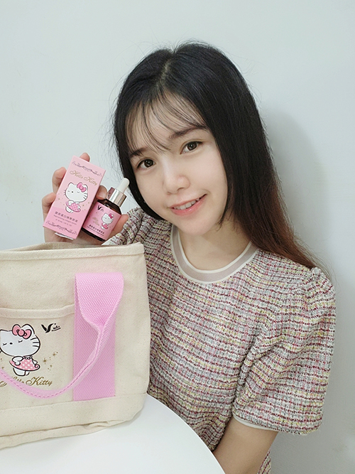 除了提袋以外膠原蛋白的瓶身也是Hello Kitty的聯名款造型,讓人還沒用光看心情就超級好