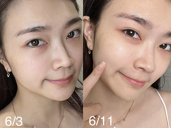 來看看這幾天的肌膚變化,黯淡無光的臉頰變得飽水又Q嫩