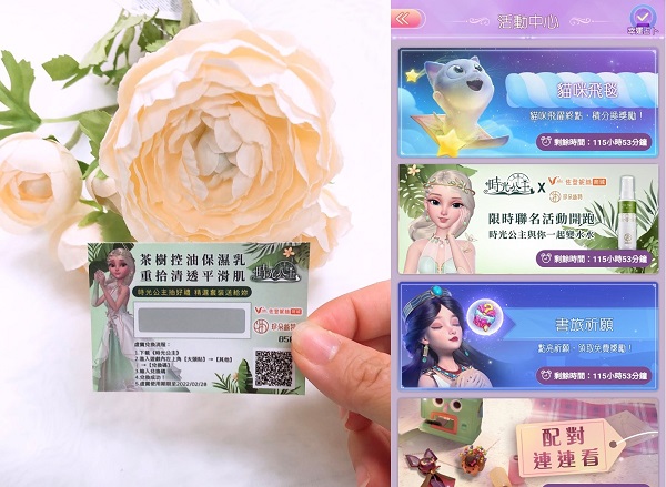 左上圖為收到的本次活動時光公主虛寶卡,下圖為時光公主遊戲畫面說明