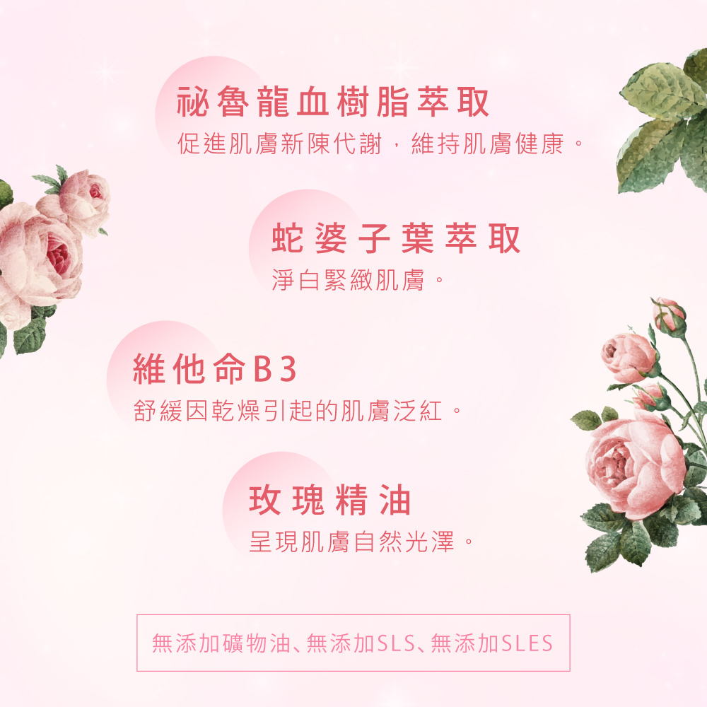 主要成分:玫瑰花水、印度蛇婆子葉萃取、海茴香萃取、祕魯龍血樹脂萃取