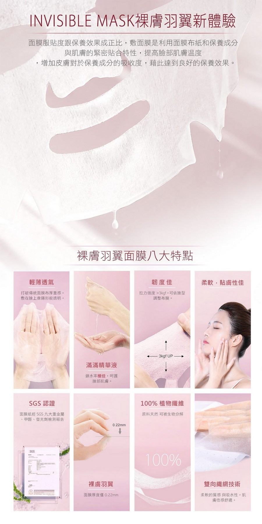 ★裸膚羽翼面膜有極佳的輕透、貼膚性