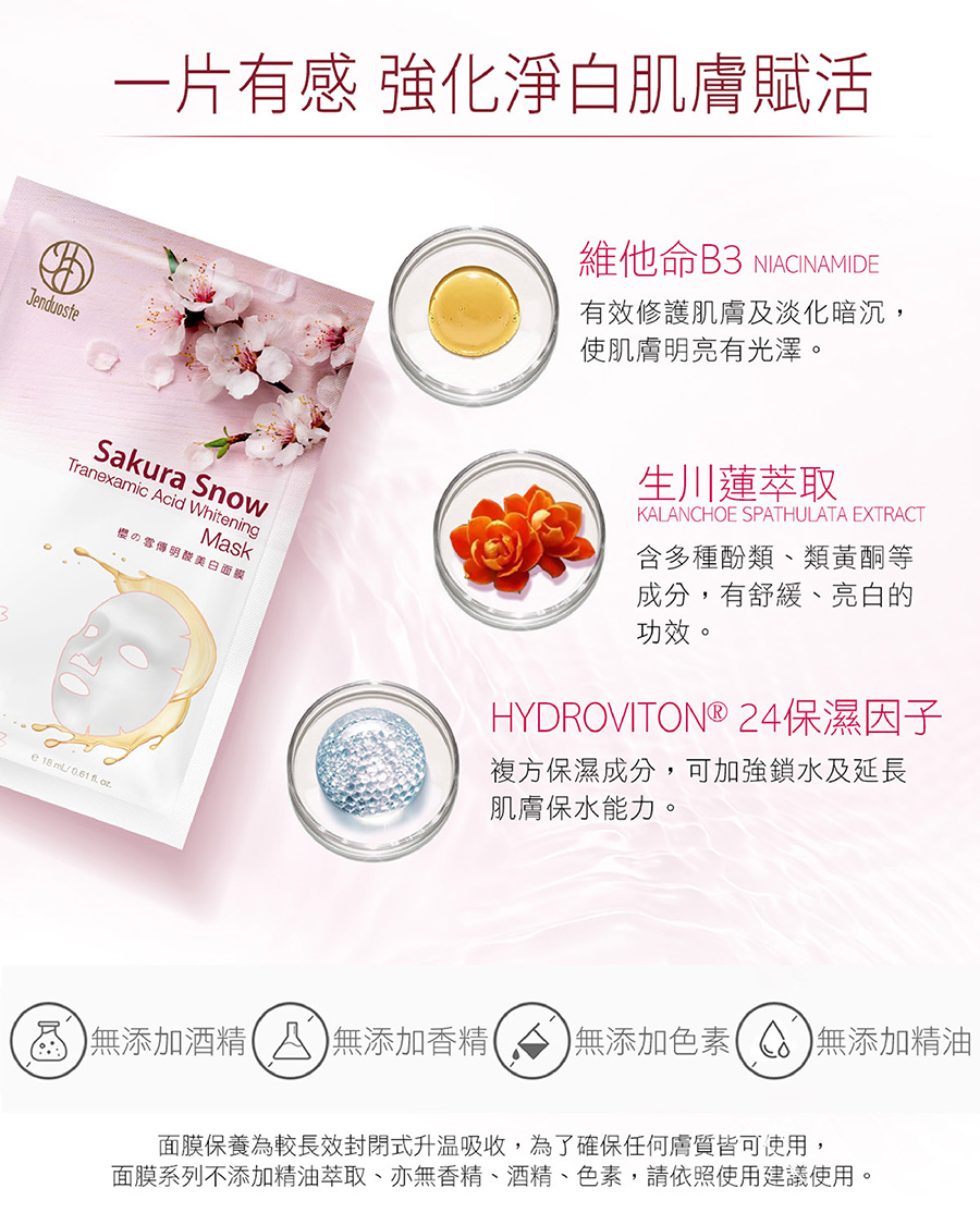 商品名稱:櫻の雪傳明酸美白面膜22mL/片