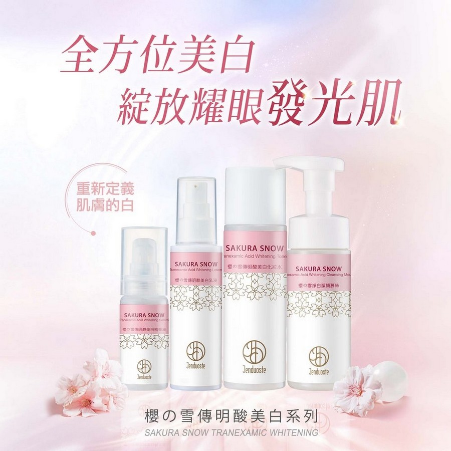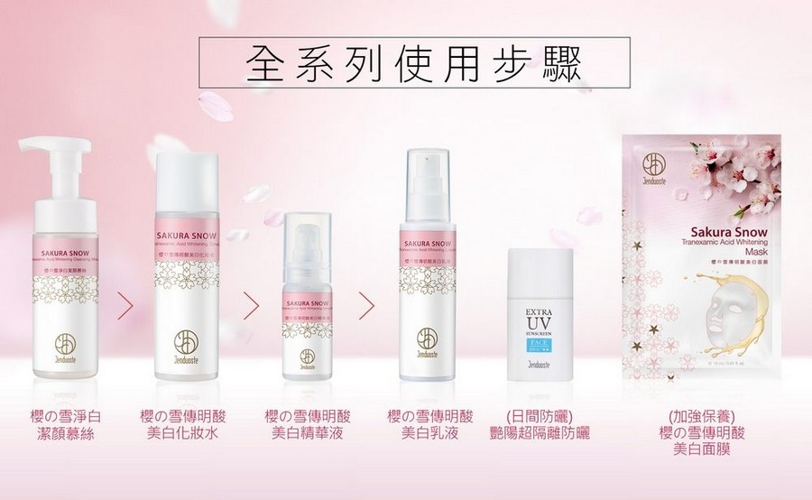 主要成分:櫻花葉萃取、Hydroviton 24保濕因子、維生素C糖苷、傳明酸、卡姆果萃取、山川蓮萃取、維他命B3