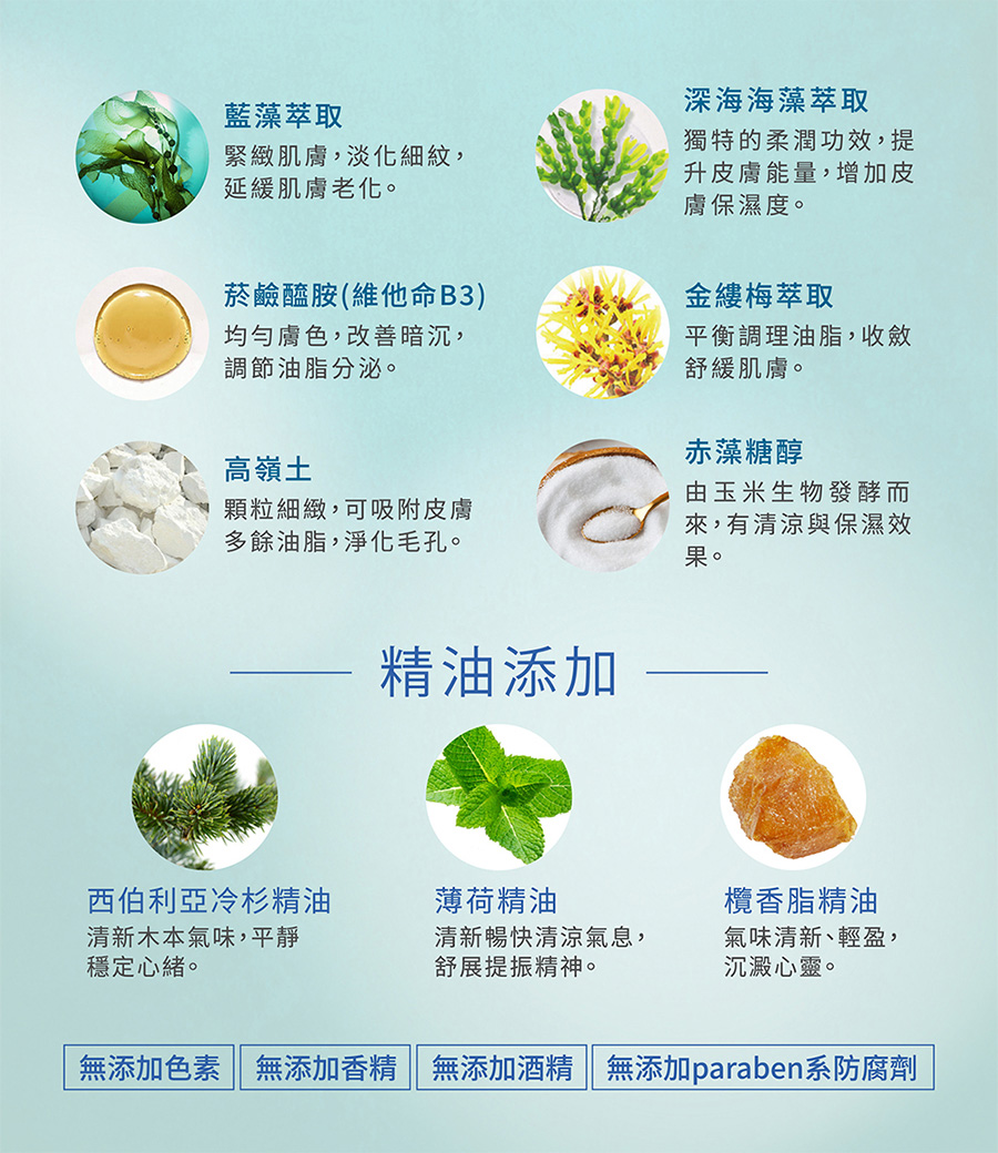 ★添加高嶺土-吸附皮膚多餘油脂