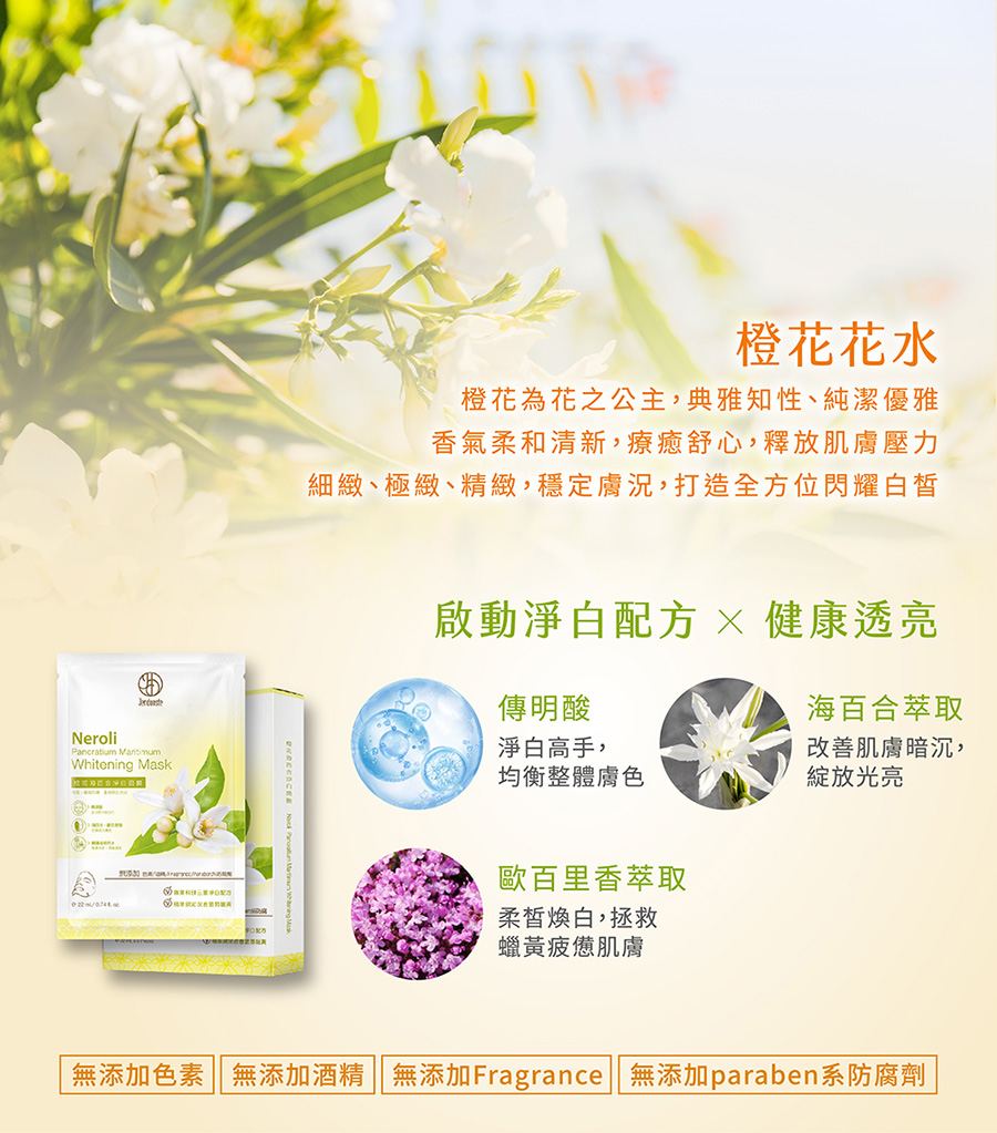 ★有效期限2026-08-03★ 橙花海百合淨白面膜22mLx5片/盒