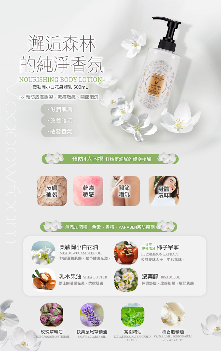 用法:沐浴後,適量塗抹於肌膚上,特別是乾燥粗糙的部位,輕輕做全身按摩,直到完全吸收為止。